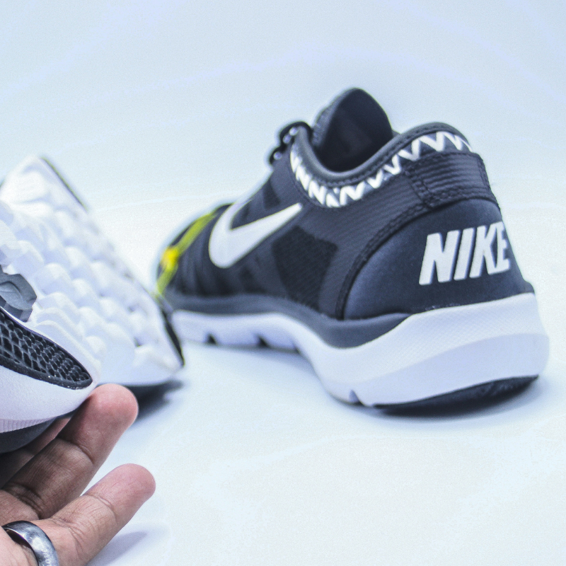 El diseño en color negro con detalles en blanco y suela blanca le da un toque moderno y versátil, ideal tanto para entrenamientos como para uso urbano.